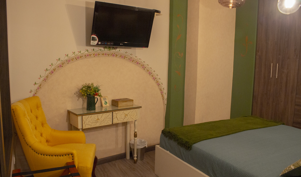 Perfecta para quienes buscan comodidad y privacidad, nuestra habitación individual está equipada con baño privado, TV con canales internacionales y conexión a internet ilimitada. Cada detalle ha sido pensado para ofrecer una experiencia de descanso óptima, en un ambiente acogedor y lleno de encanto.